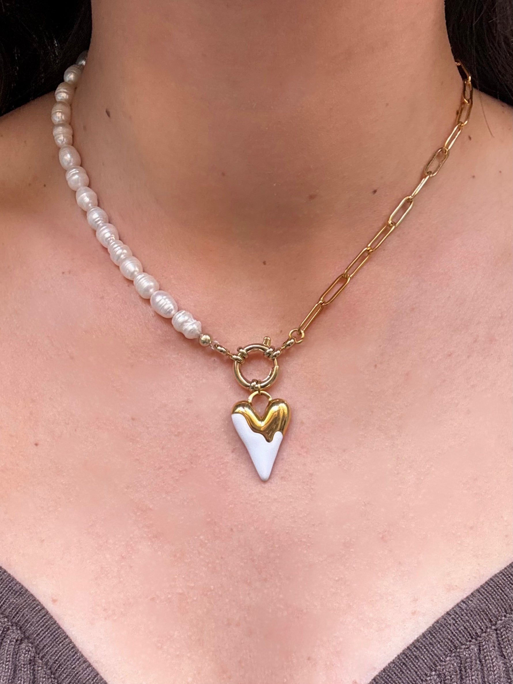 Collana beauty con cuore bianco oro in acciaio inossidabile