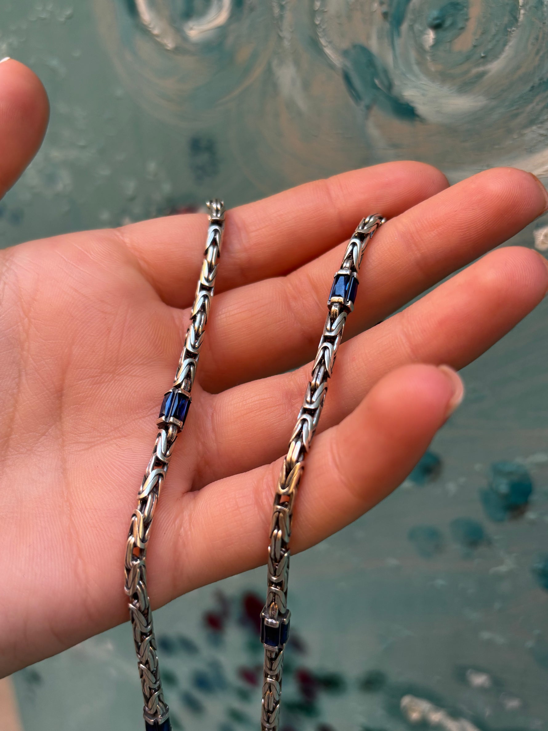 Collana Snake indiano in argento 925 con Swarovski blu.